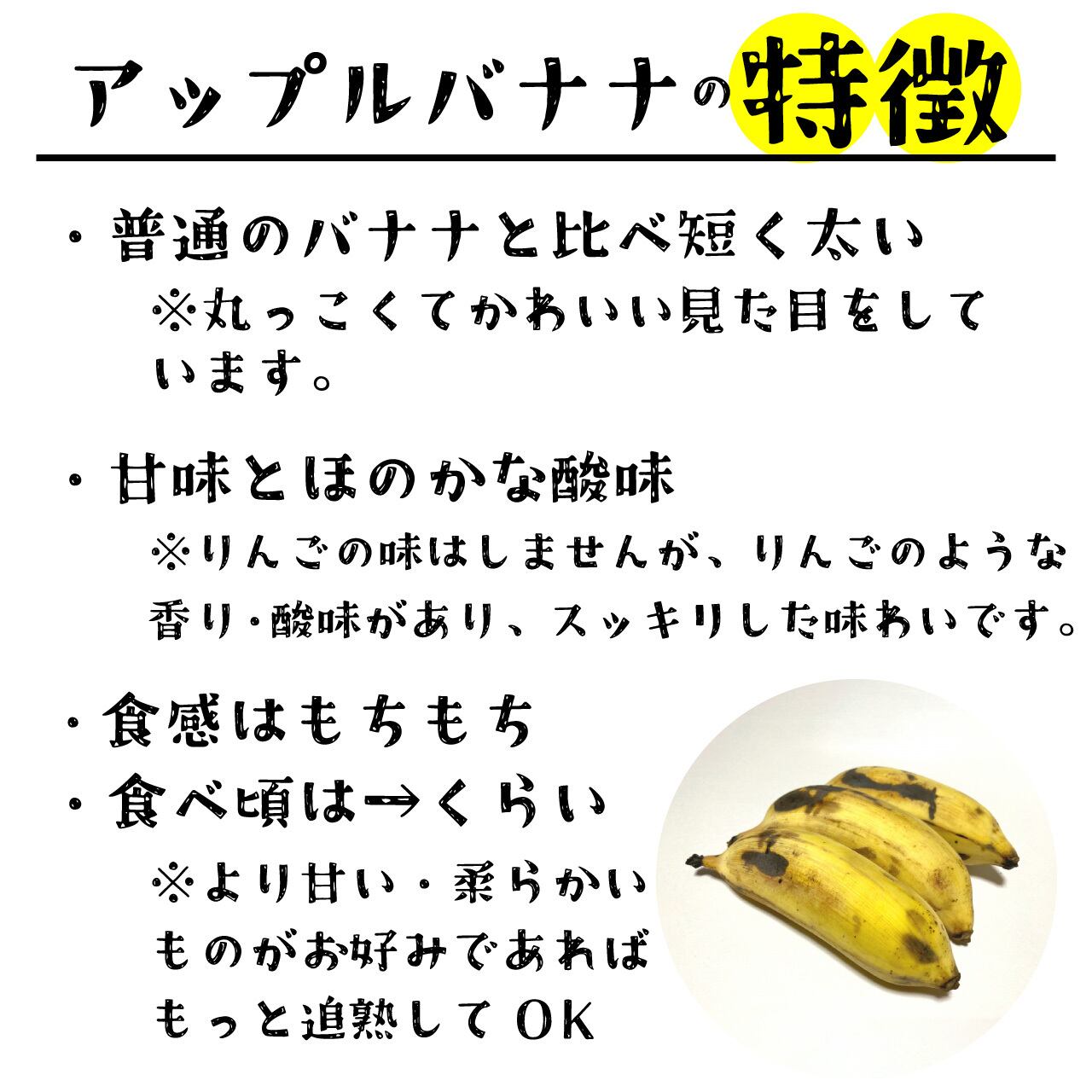 ※アップルバナナは自然のものですので、形や色合いに多少の違いがあることがございます。配送時の揺れなどで傷がつく場合がありますので、お早めにお召し上がりください。
